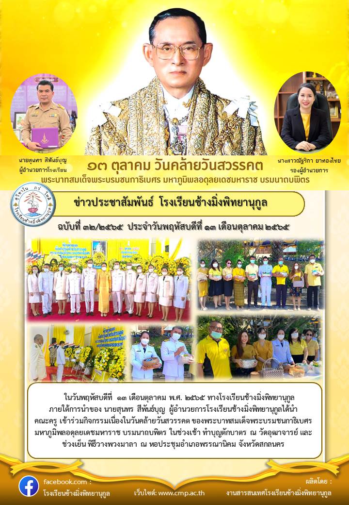เข้าร่วมกิจกรรมเนื่องในวันคล้ายวันสวรรคต ของพระบาทสมเด็จพระบรมชนกาธิเบศร มหาภูมิพลอดุลยเดชมหาราช บรมนาถบพิตร