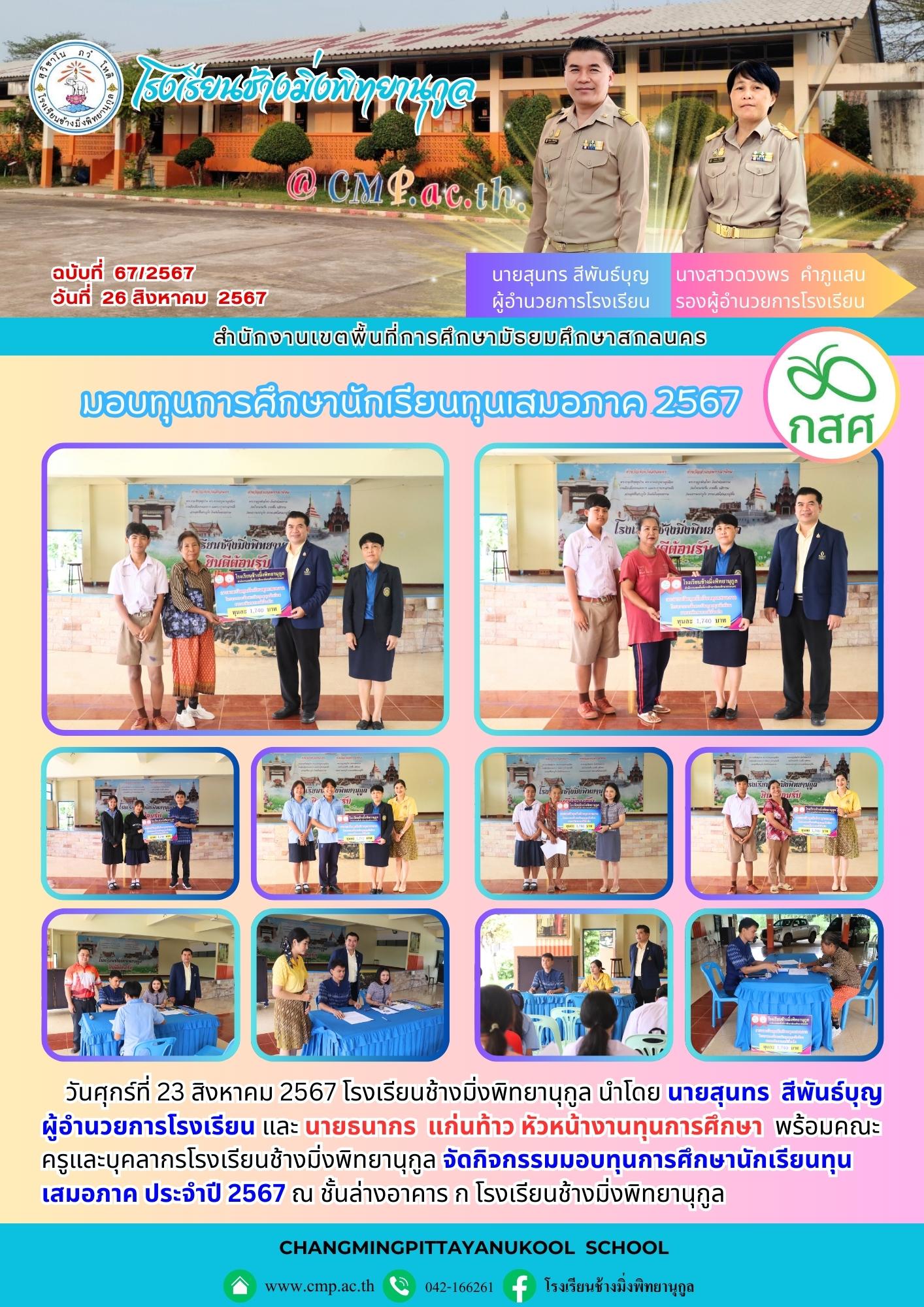 ทุการศึกษานักเรียนทุนเสมอภาค 2567