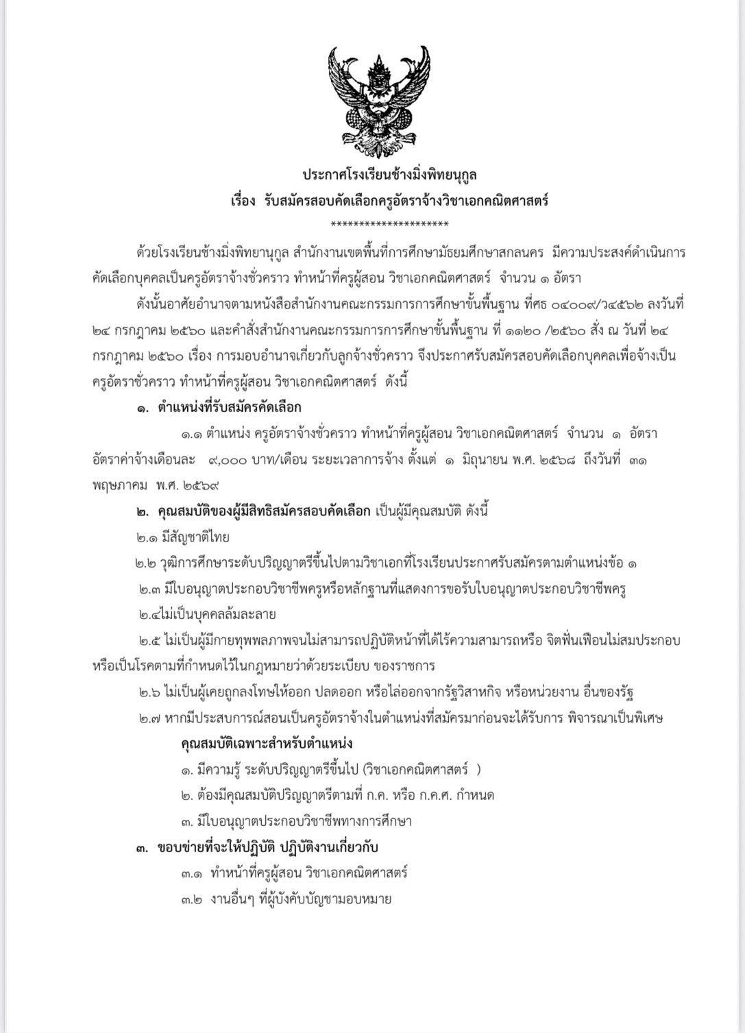 ประกาศรับสมัครสอบคัดเลือกครูอัตราจ้างวิชาเอกคณิตศาสตร์