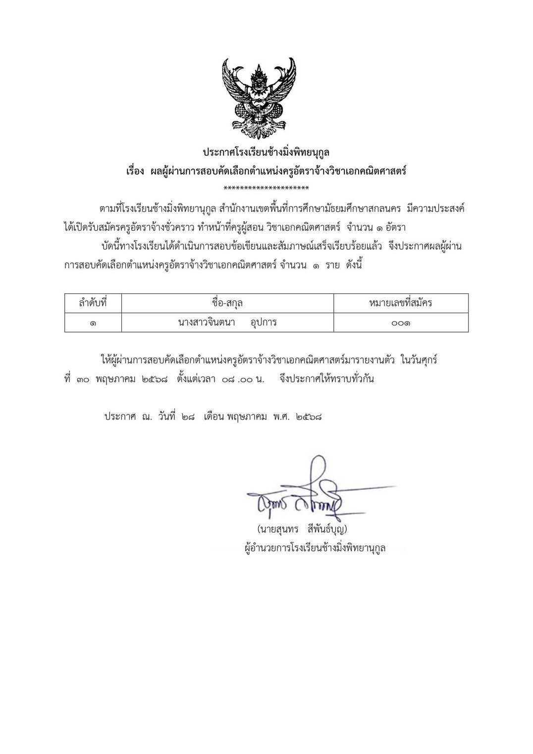 ประกาศผลผู้ผ่านการสอบคัดเลือกตำแหน่งครูอัตราจ้างวิชาเอกคณิตศาสตร์