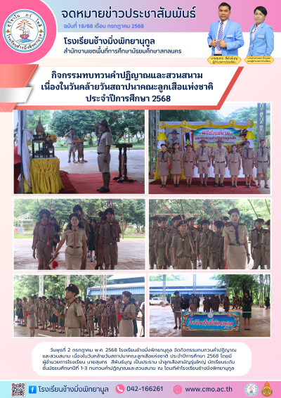 กิจกรรมทบทวนคำปฏิญาณและสวนสนาม เนื่องในวันคล้ายวันสถาปนาคณะลูกเสือแห่งชาติ ประจำปีการศึกษา 2568