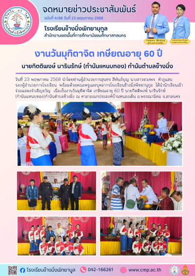 งานวันมุทิตาจิต เกษียณอายุ 60 ปี นายกิตติพงษ์ นารินรักษ์ (กำนันแหนบทอง) กำนันตำบลช้างมิ่ง
