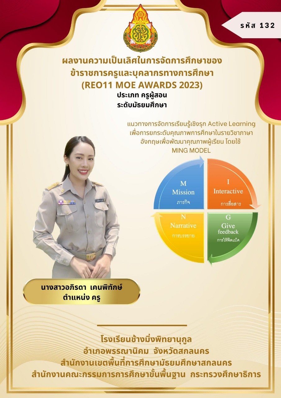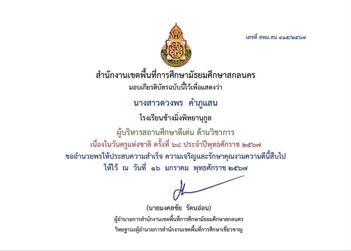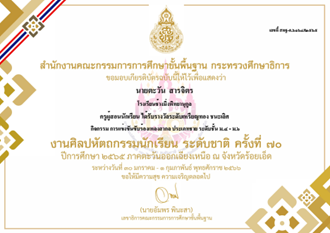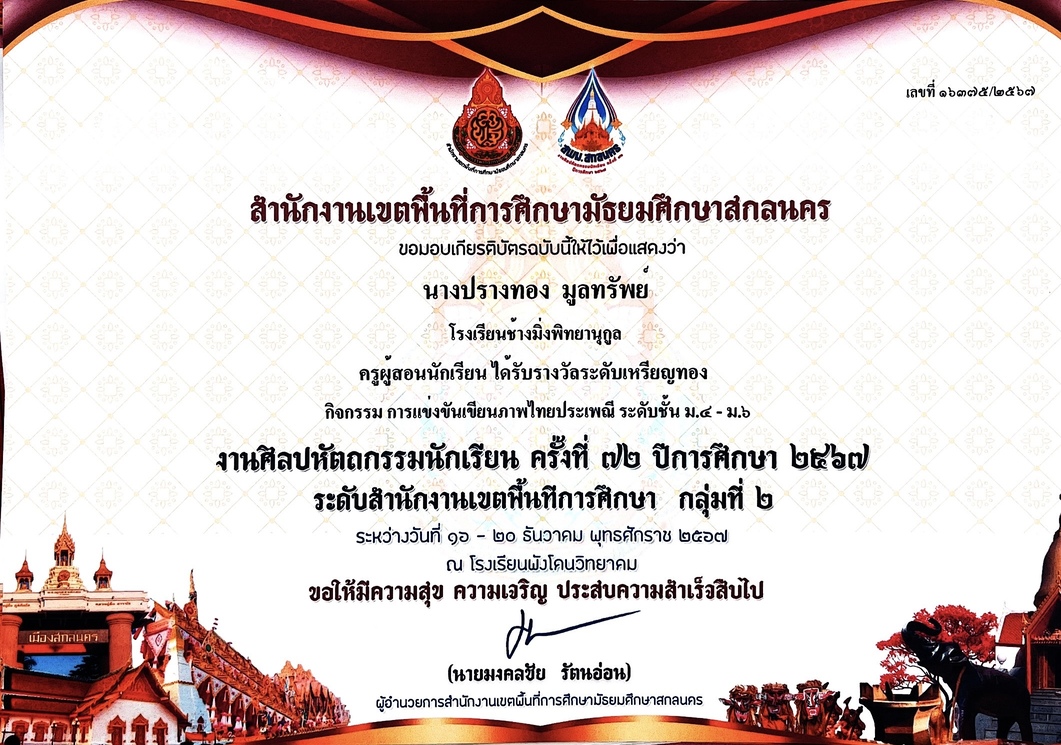 ครูผู้สอนนักเรียนได้รับ รางวัลระดับเหรียญทอง กิจกรรมการแข่งขันเขียนภาพประเพณีไทยระดับชั้นม.4-ม.6 งานศิลปหัตถกรรมนักเรียนครั้งที่ 72 ปีการศึกษา 2567 |